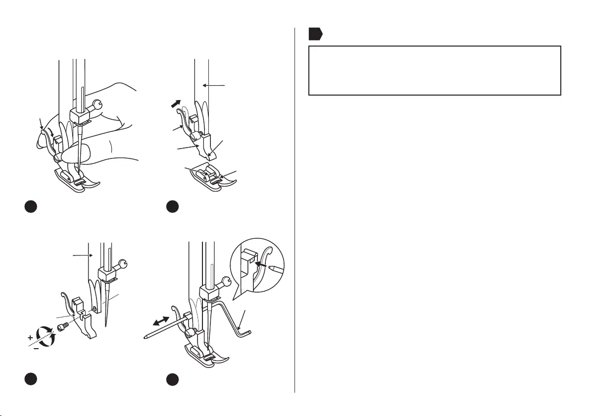 encima del pasador (d). (2) El prensatelas (f) se acoplará