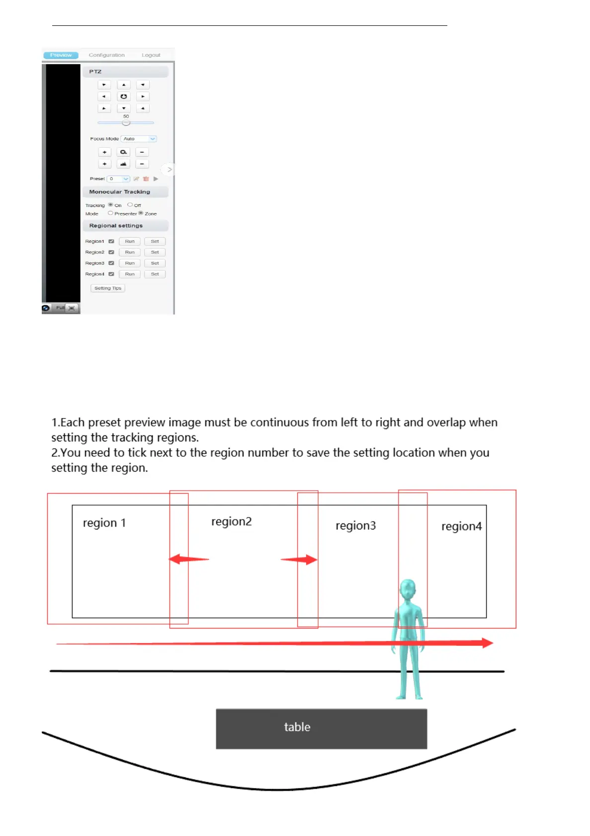 1. On the PTZ Area, adjust image by clicking direction buttons to select one region.