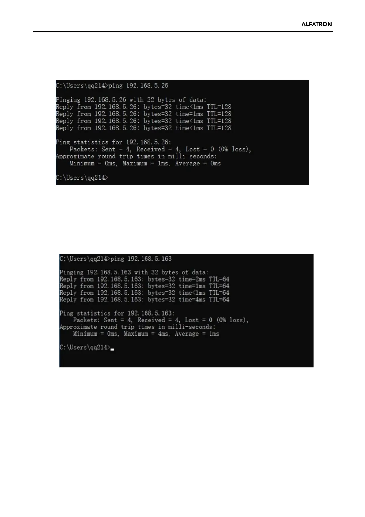 the IP is default, open the DOS command window and input 192.168.5.163, then press the Enter key, it will display the same as Image