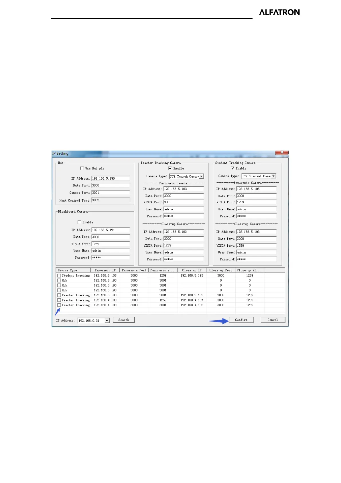 of device to be configured and click Confirm. Note: The computer for operating the Alfatron