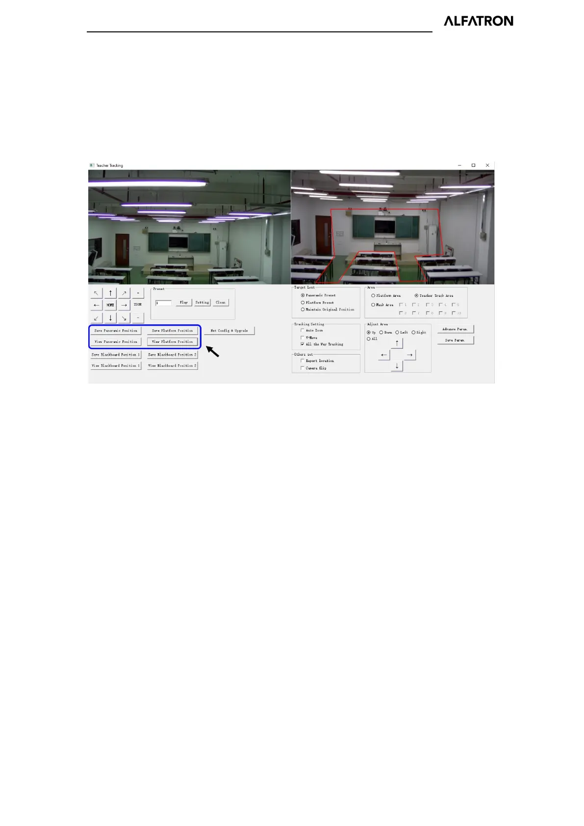 Panoramic preset: Control tracking camera to allow it to have a panoramic view of the classroom