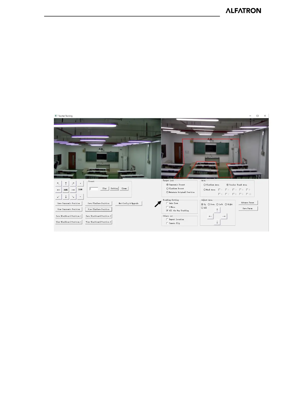 according to the height of the tracking target; in off mode (unchecked) and during tracking, the
