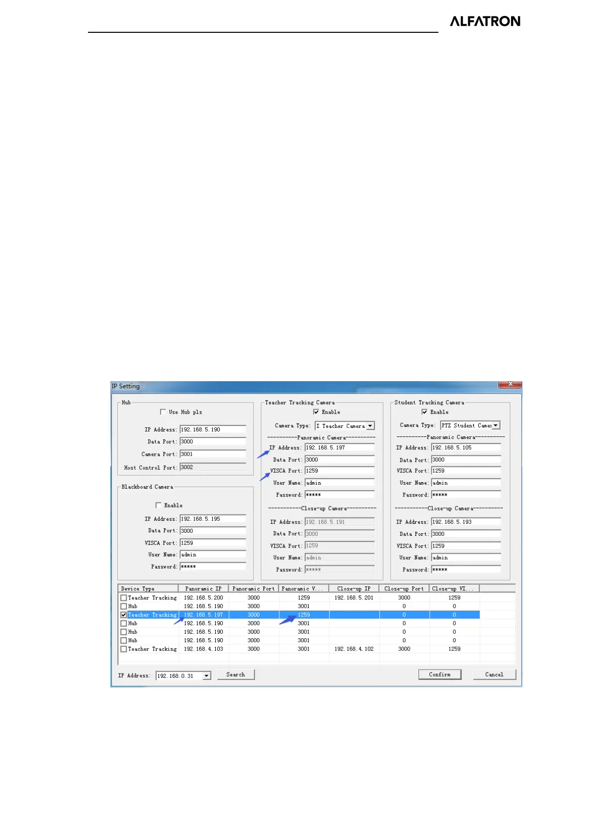 Address for teacher tracking camera to receive commands can be searched in Alfatron tracking