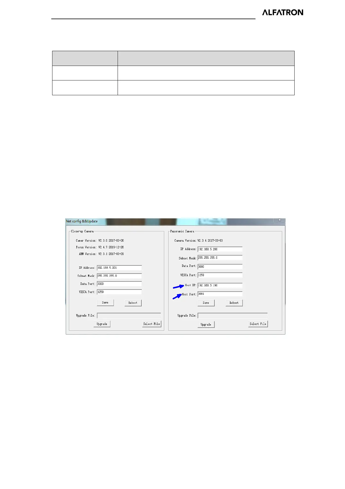configure the host address via the Alfatron tracking software tool. Click Configuration -> Network