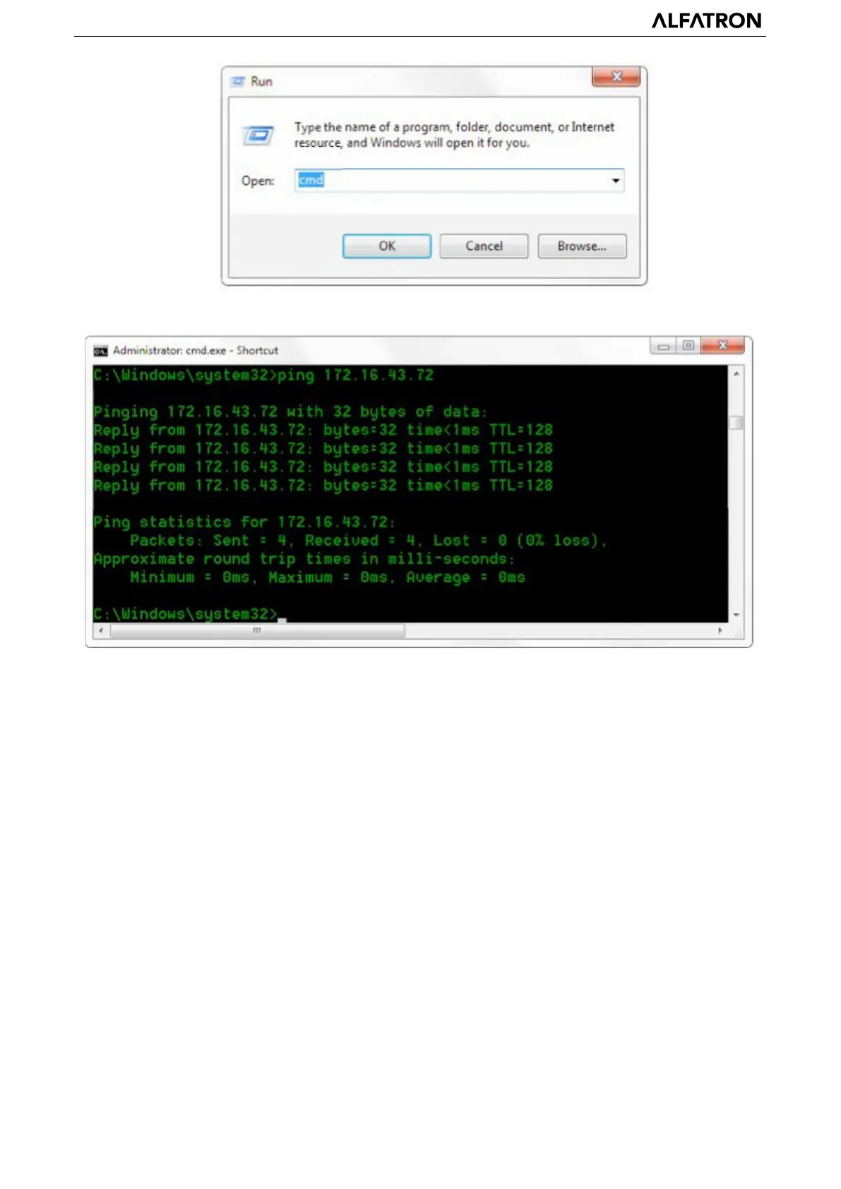 open DOS command window and input 192.168.5.163, then press Enter key. It will show message as below: which means