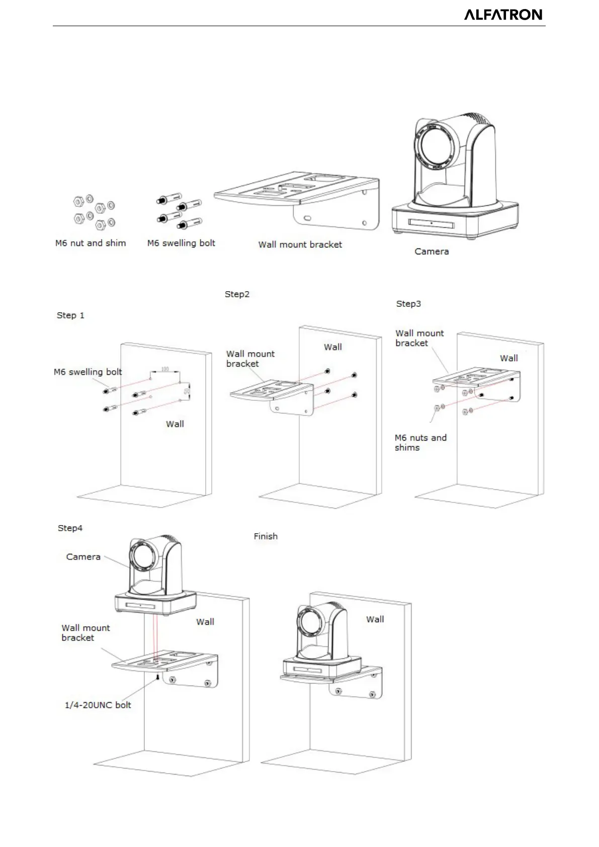 Note: Bracket can only be wall mounted or ceiling mounted on a concrete wall and cannot be installed on plasterboard.