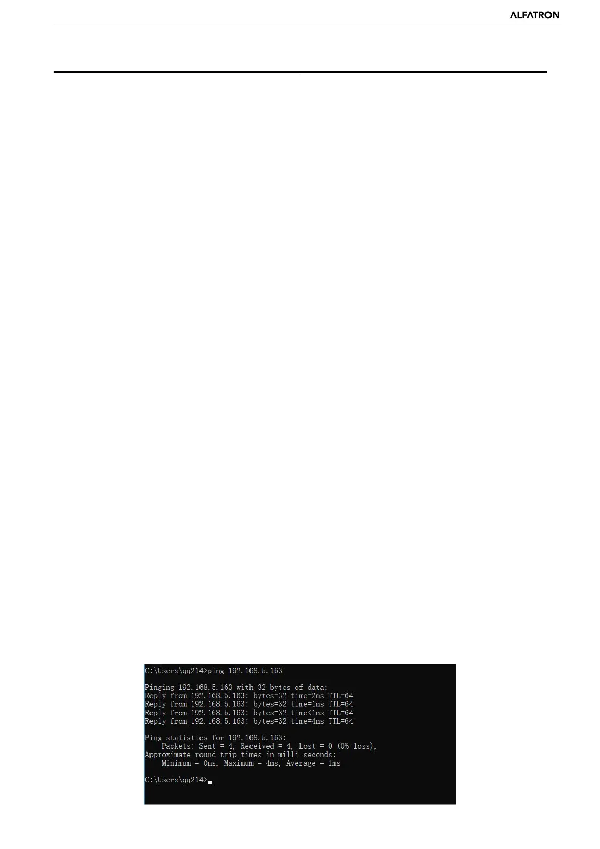 type ‘ping 192.168.5.163’. Press the Enter key to see message as follows: (below image show network connection is normal)