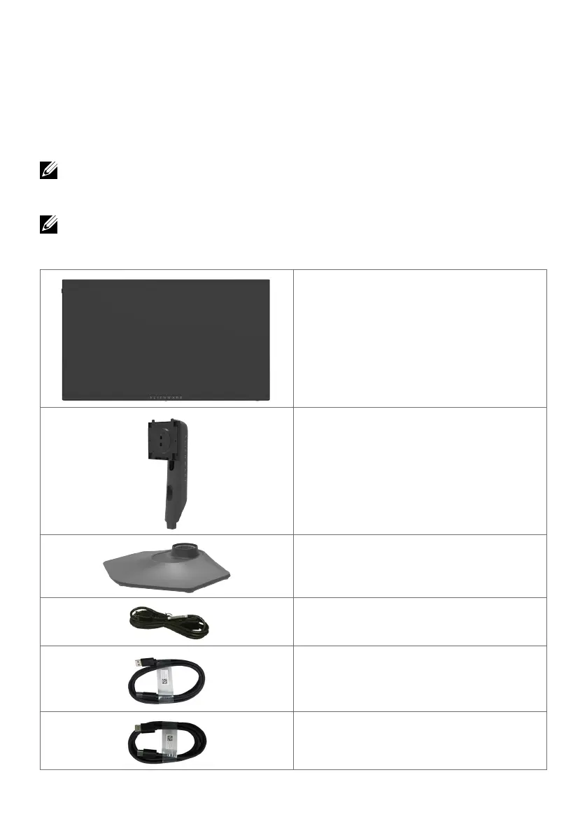 Uw monitor wordt geleverd met de componenten die in de volgende tabel zijn