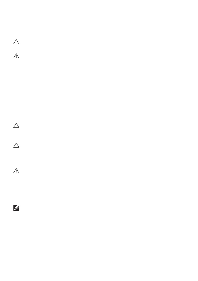 • Na het reinigen van het tafelblad en voordat u het Dell-beeldscherm erop