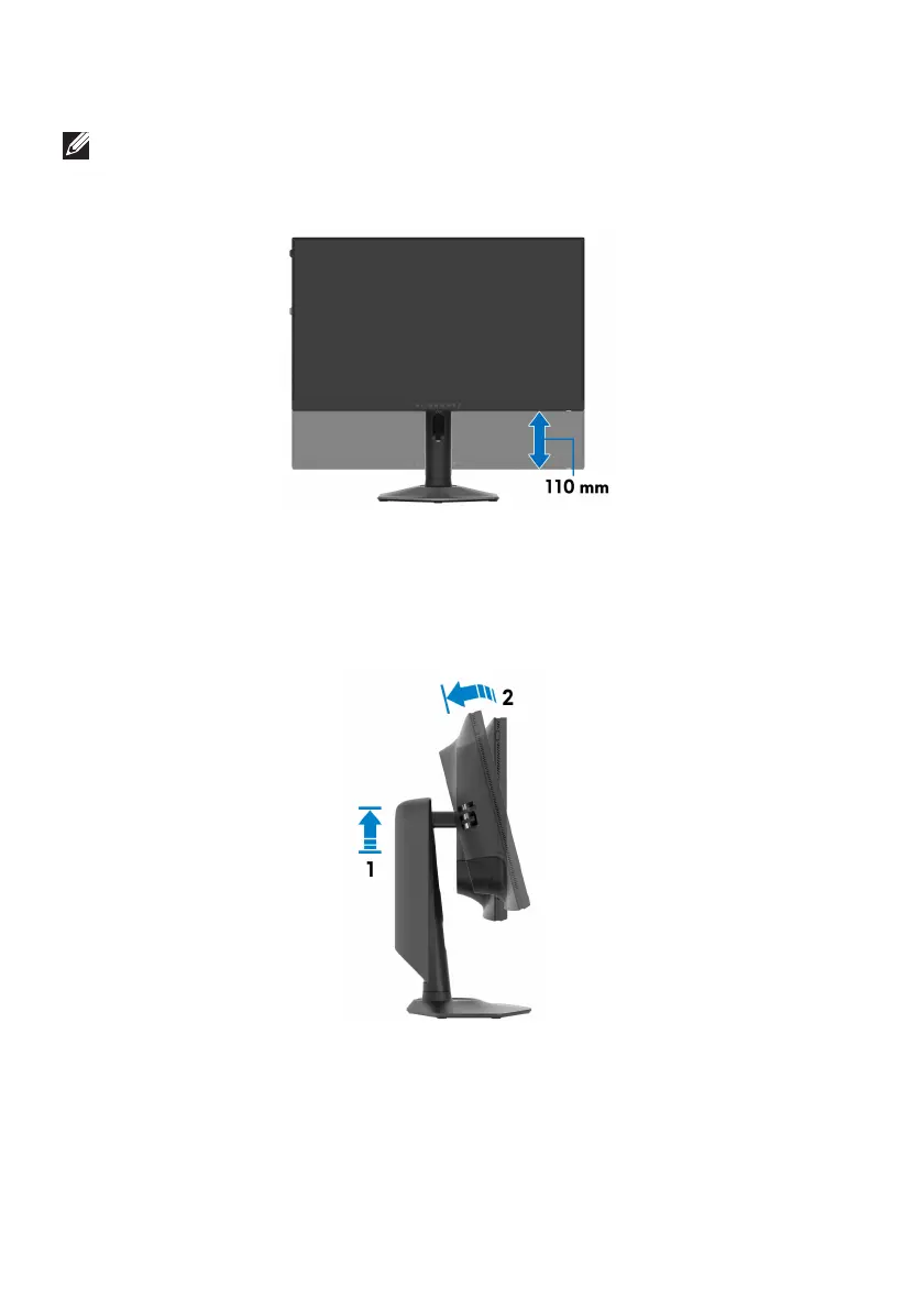 OPMERKING: De standaard kan maximaal 110 mm verticaal worden