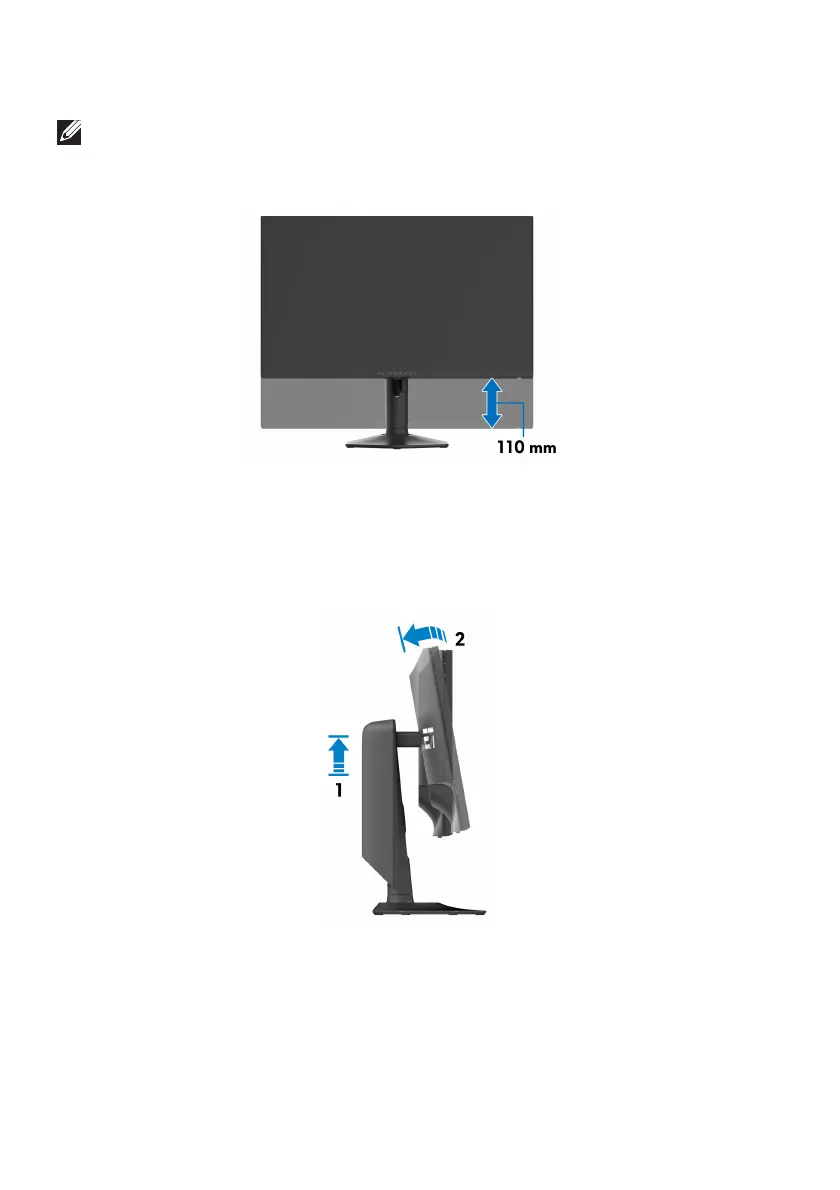 OPMERKING: De standaard kan maximaal 110 mm verticaal worden