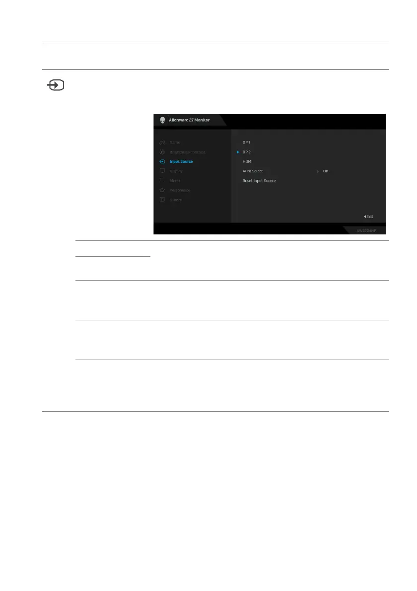DP 1 Selecteer de ingang DP 1 of DP 2 wanneer u de