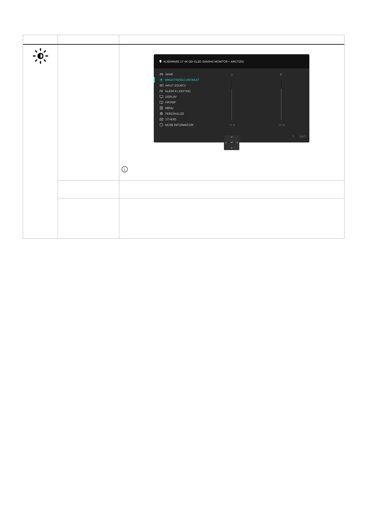 BRIGHTNESS The BRIGHTNESS feature adjusts the luminance of the display.
