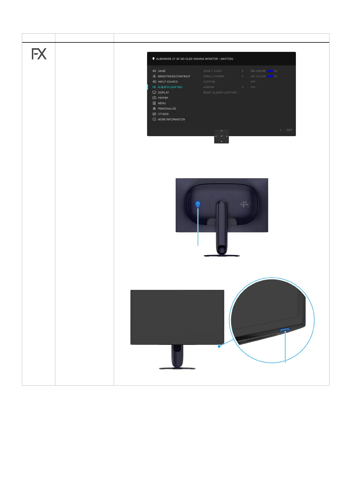 ALIENFX LIGHTING Adjusts the LED light settings for the Alienware logo and Power button.