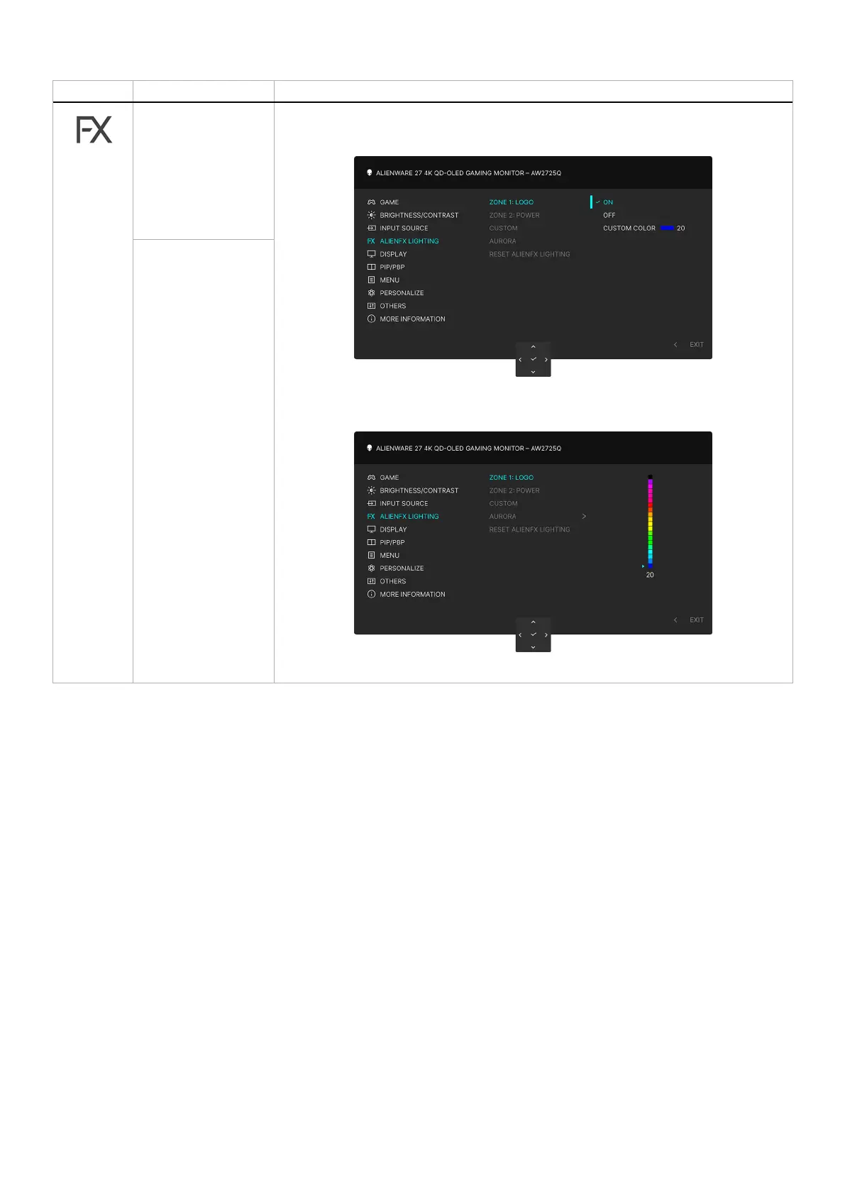 ZONE 1: LOGO To specify a LED lighting color for the selected zone, select ON and then move the