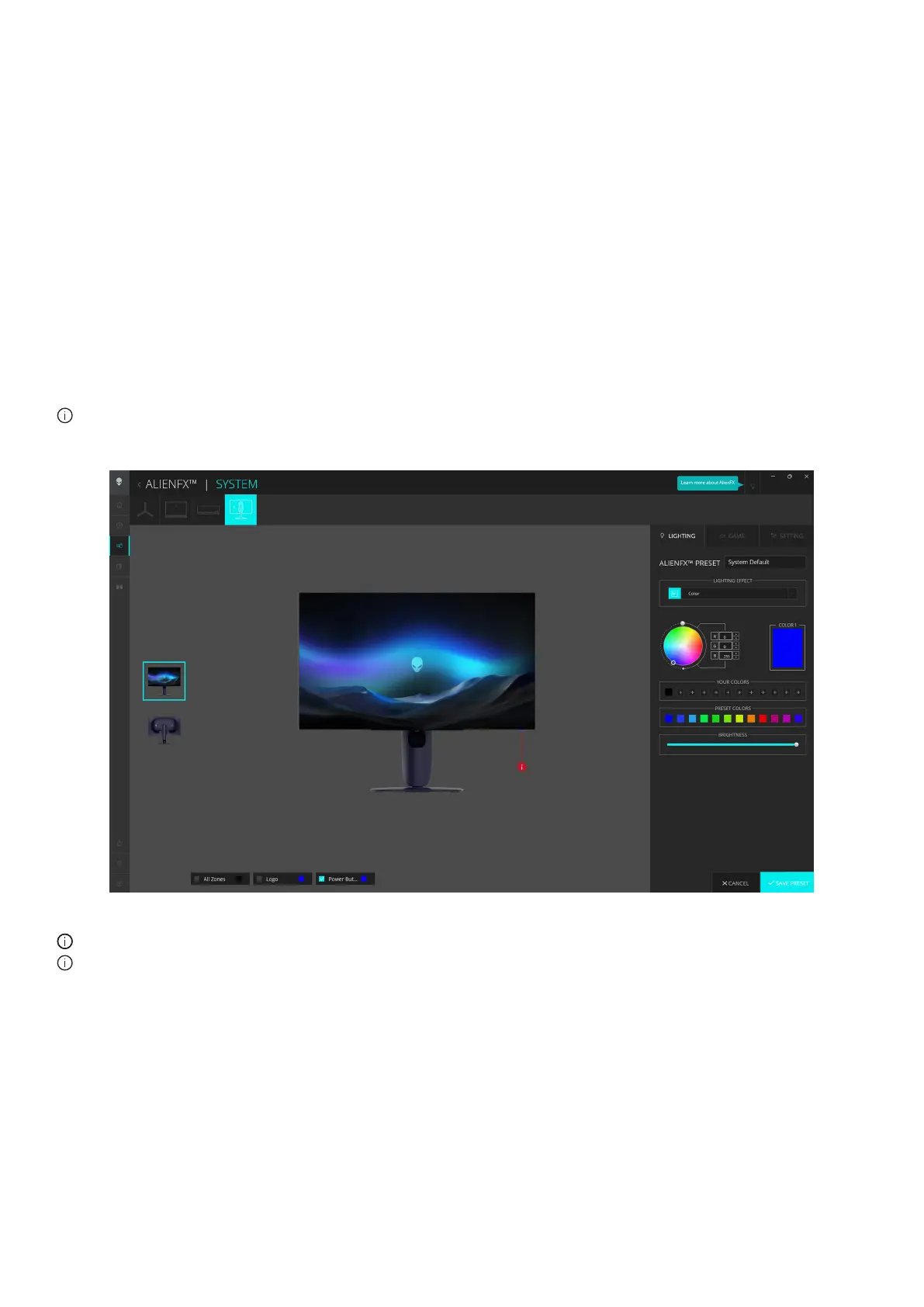 NOTE: Spectrum/Static Default Blue/Aurora is available only when you select All Zones for lighting adjustments.