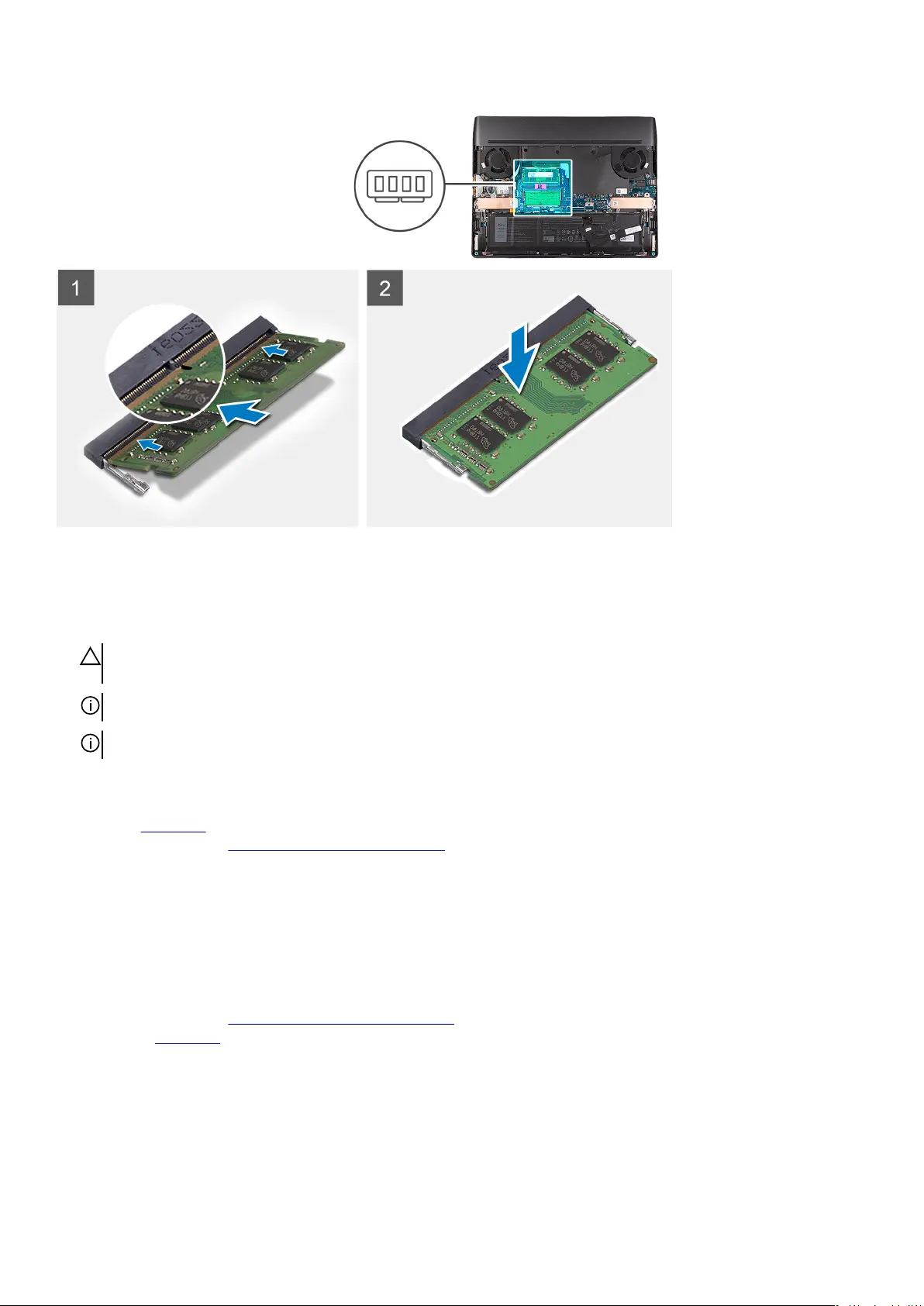 NOTE: Repeat the steps to install a second memory into your computer.