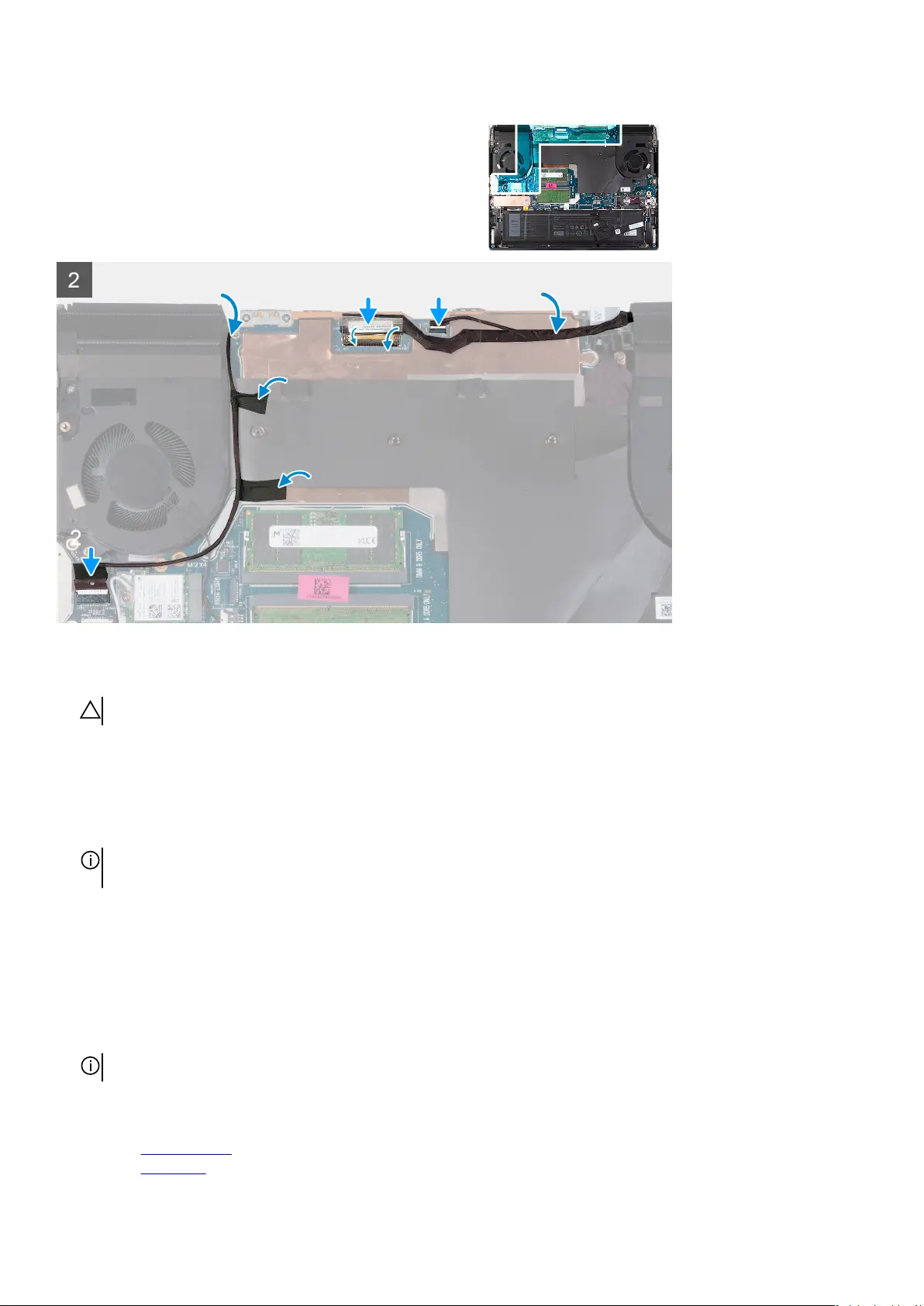 4. Route the display cable and Alien head LED-cable through the routing guides on the display assembly.