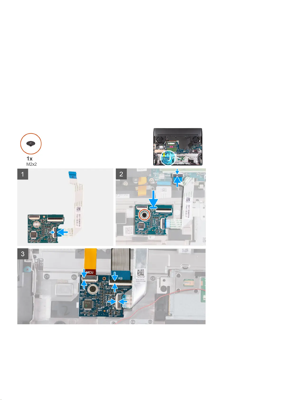 3. Replace the screw (M2x2) that secures the keyboard-controller board to the palm-rest and keyboard assembly.