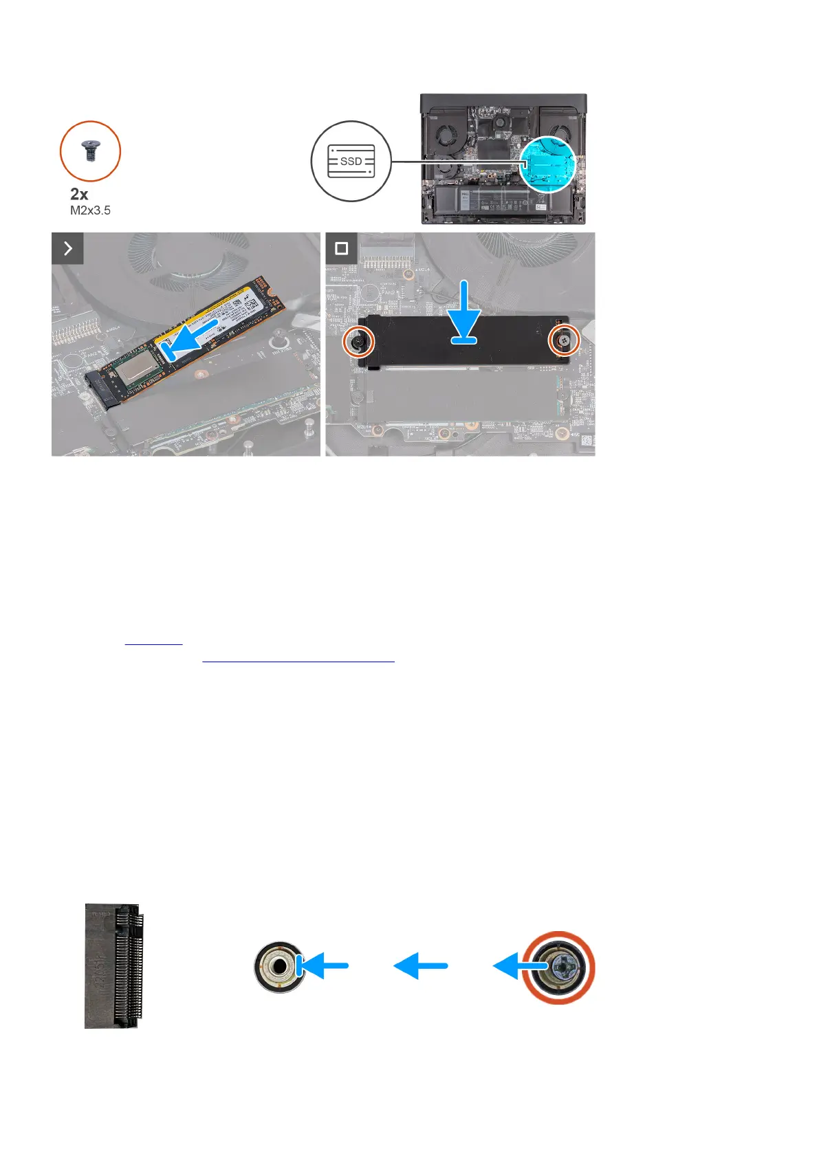 4. Replace the two screws (M2x3.5) that secure the M.2 2280 thermal shield to the palm-rest and keyboard assembly.