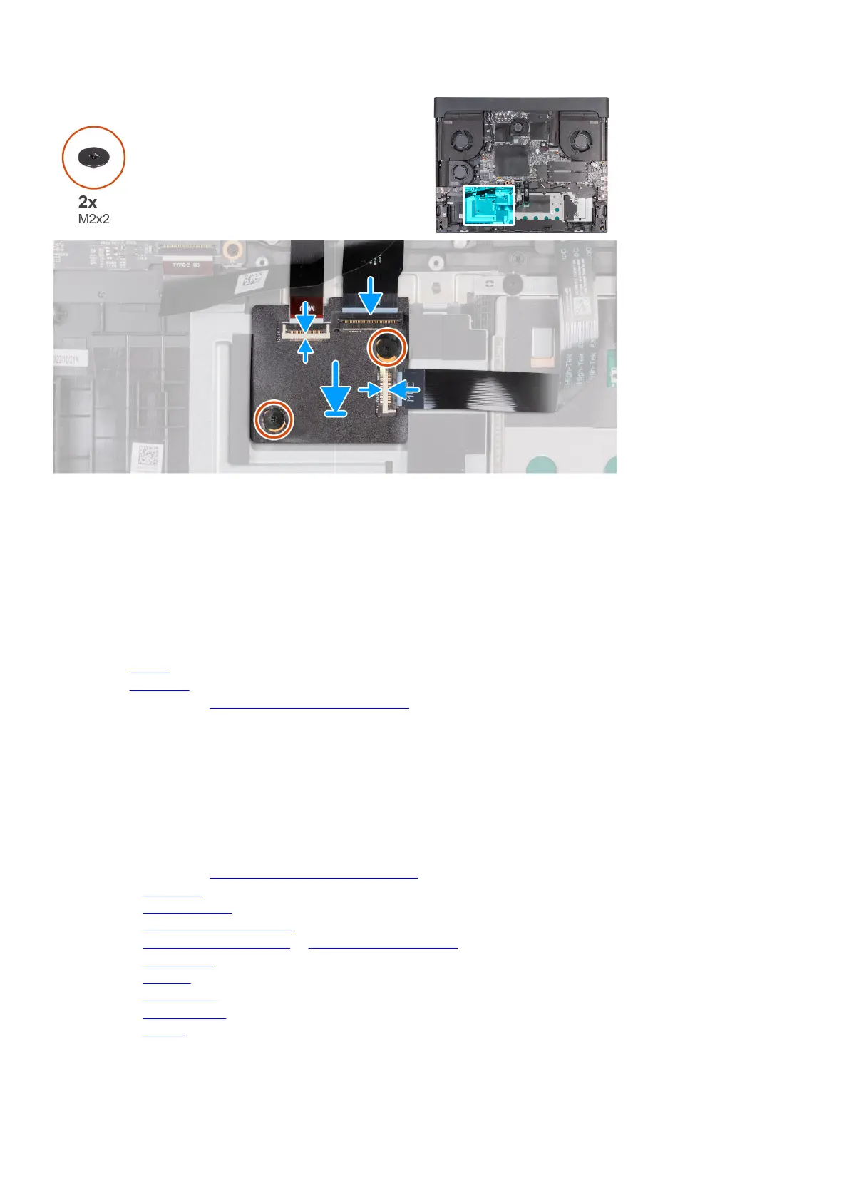 2. Replace the two screws (M2x2) that secures the keyboard-controller board to the palm-rest and keyboard assembly.