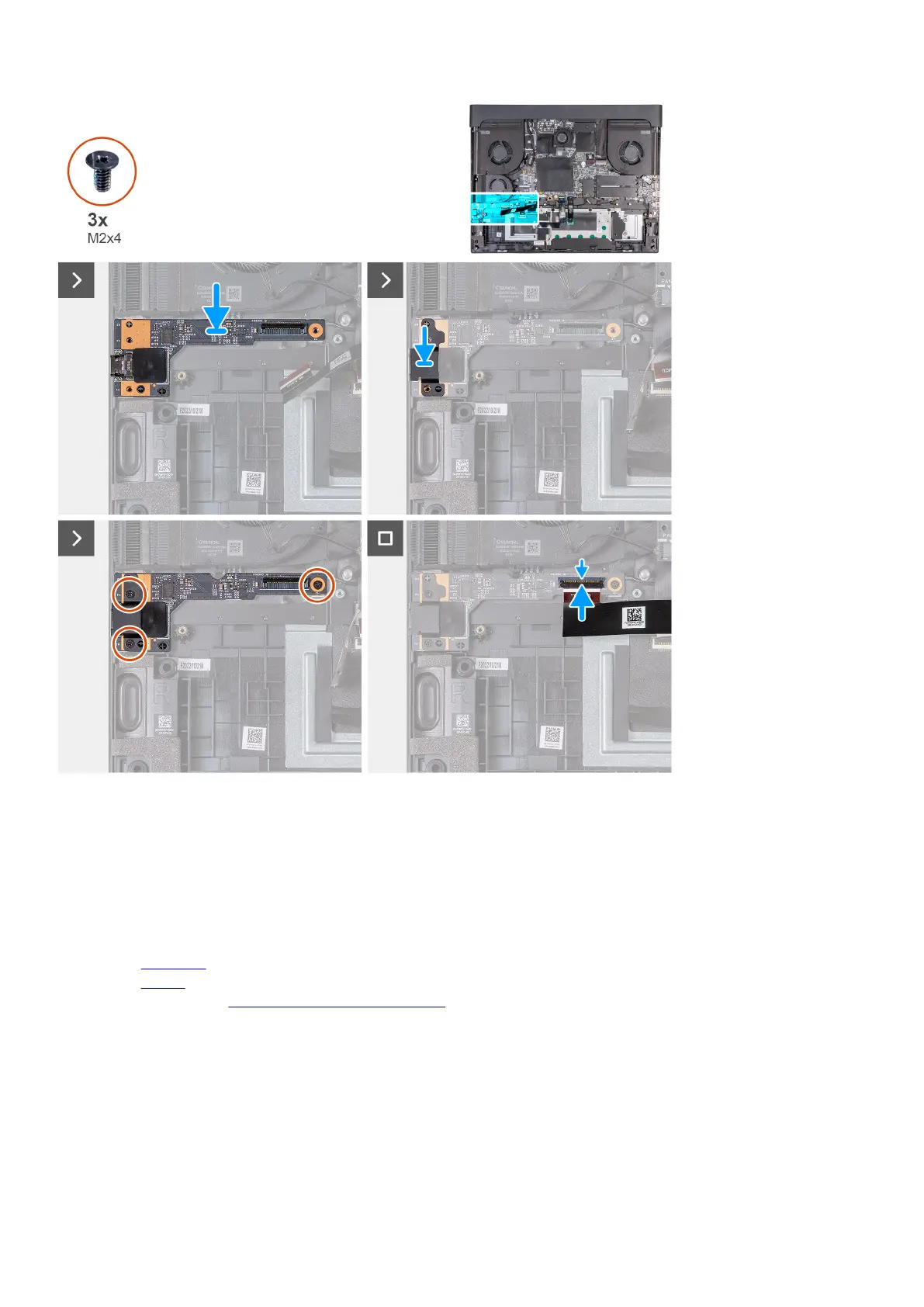 3. Replace the three screws (M2x4) that secure the USB Type-C board to the system-board assembly.