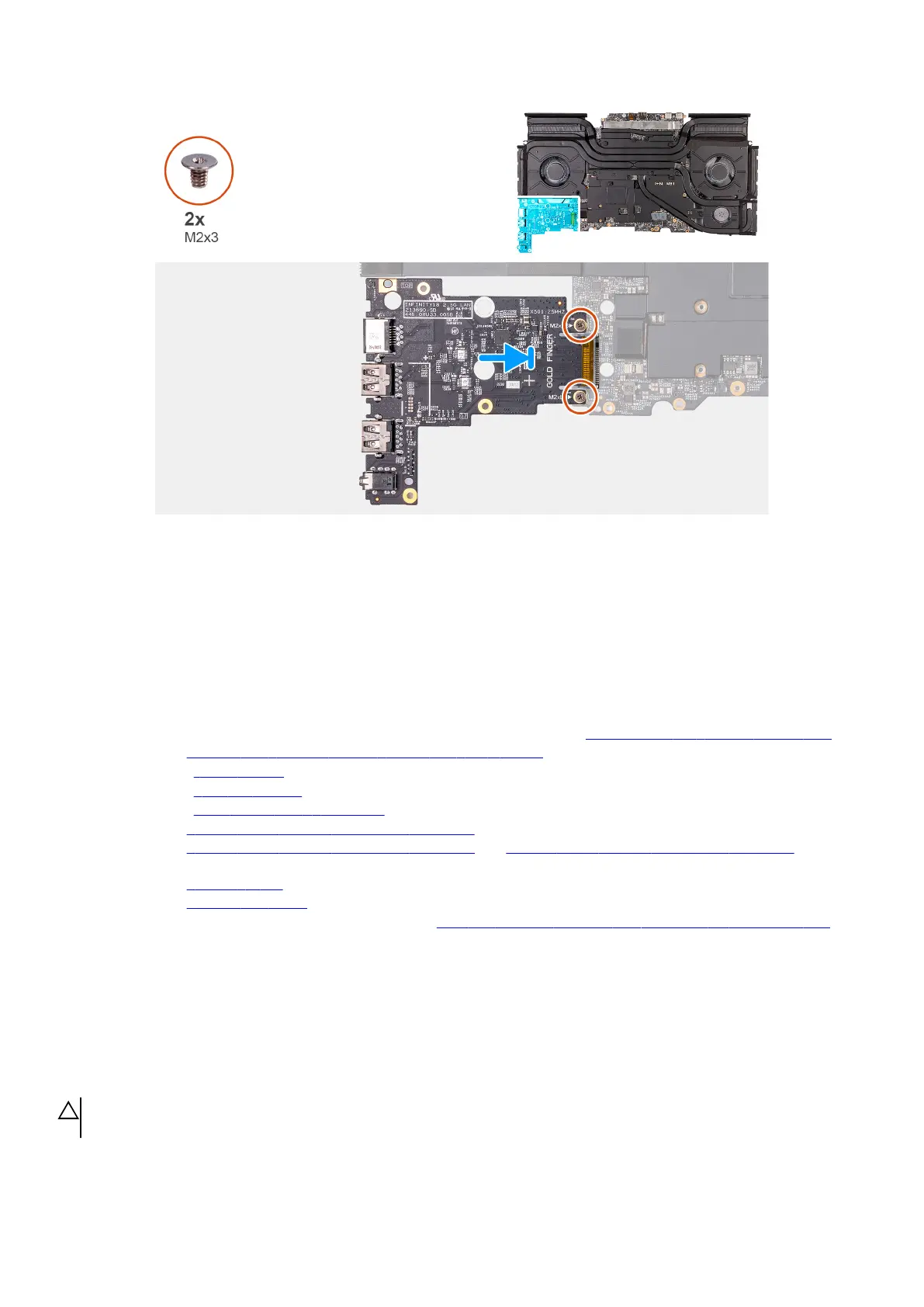3. Επανατοποθετήστε τις δύο βίδες (M2x3) που συγκρατούν την πλακέτα ήχου στη διάταξη της πλακέτας συστήματος.