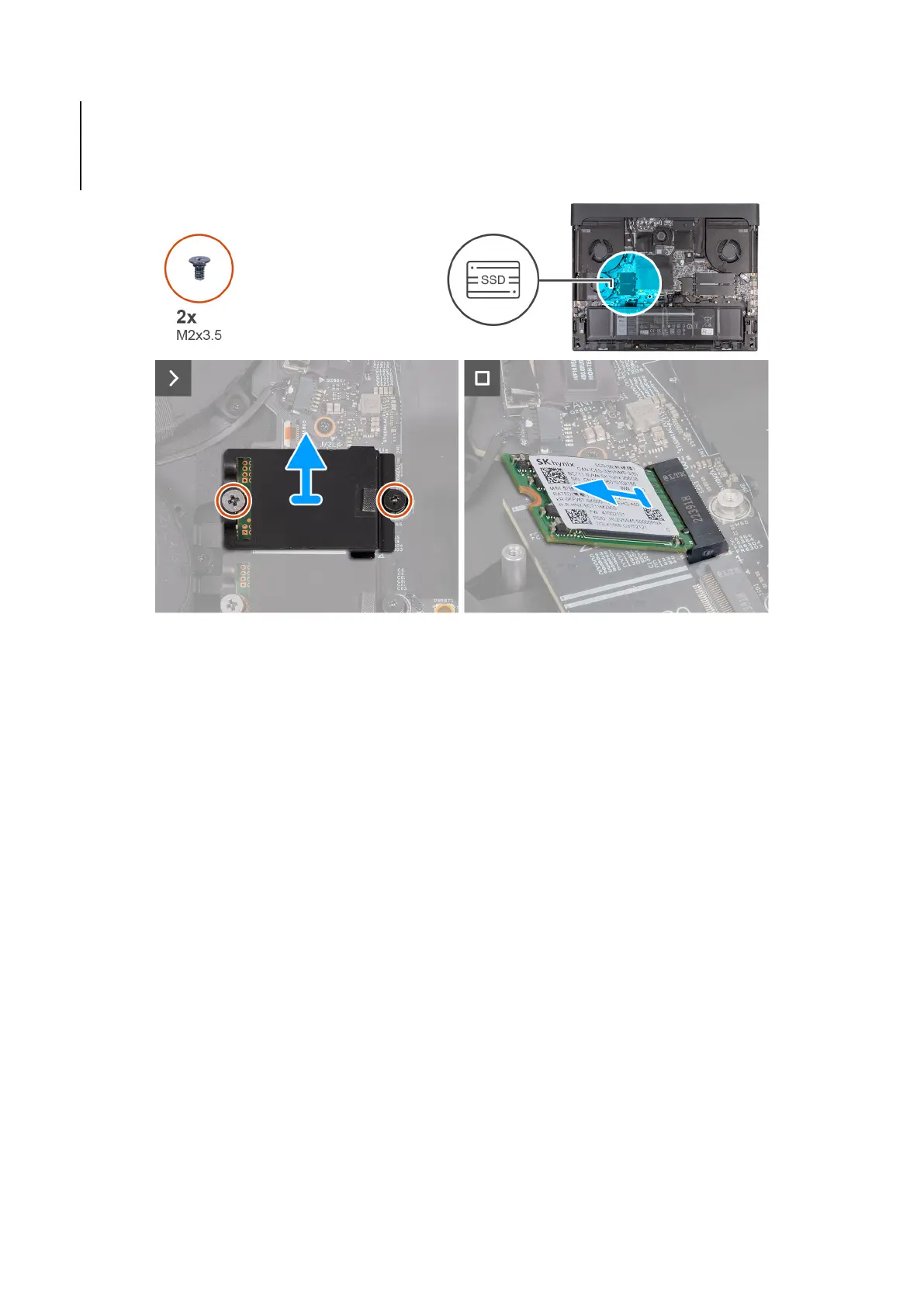1. Αφαιρέστε τις δύο βίδες (M2x3.5) που συγκρατούν τη θερμική θωράκιση της μονάδας M.2 2230 στη διάταξη στηρίγματος