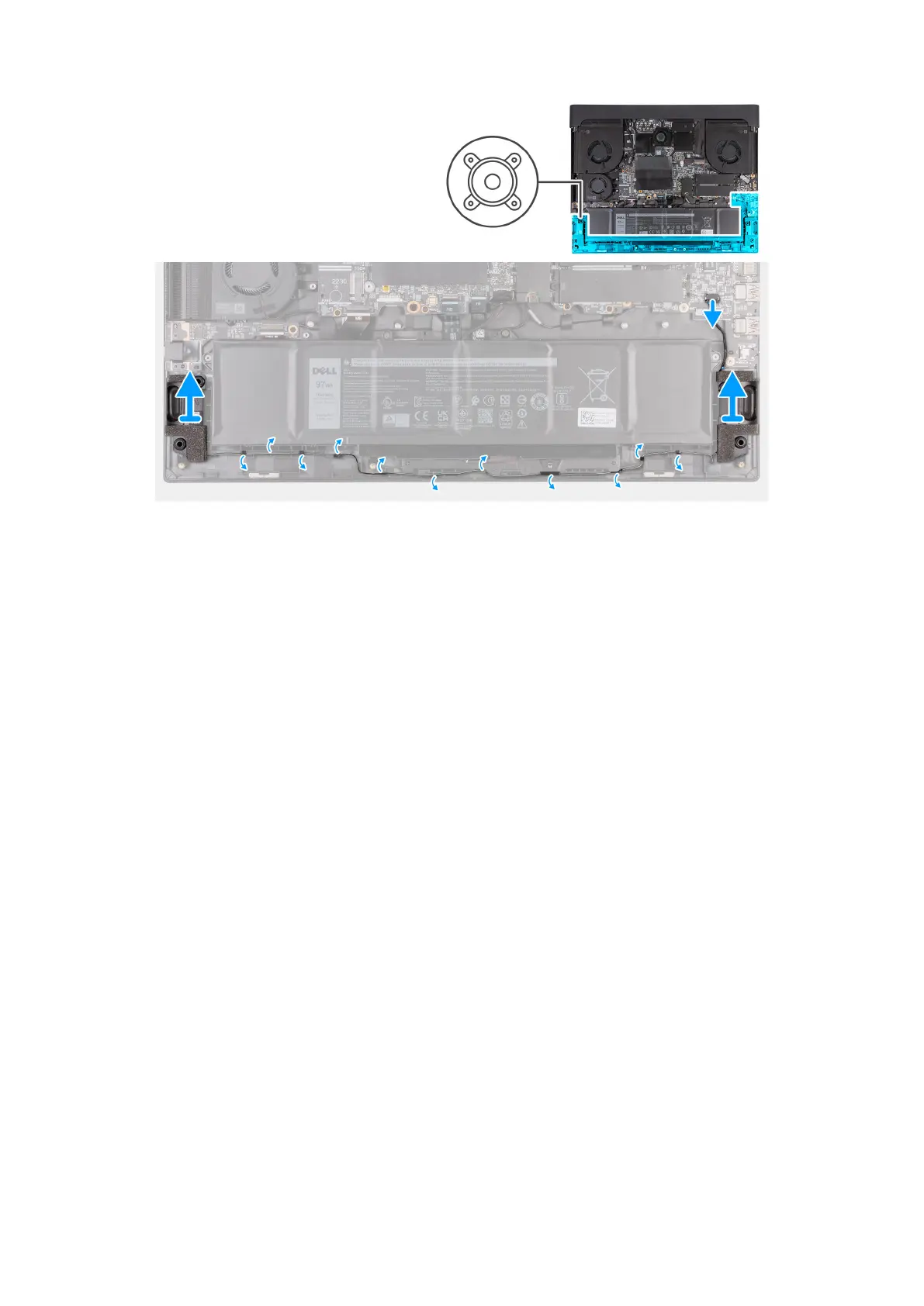 3. Ανασηκώστε το δεξιό και το αριστερό ηχείο, μαζί με τα καλώδιά τους, και αφαιρέστε τα από τη διάταξη στηρίγματος παλάμης και