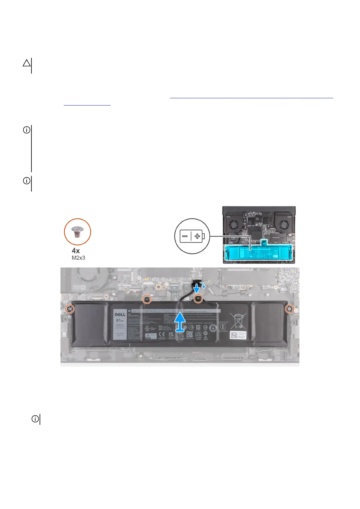 3. Αφαιρέστε τις τέσσερις βίδες (M2x3) που συγκρατούν την μπαταρία στη διάταξη στηρίγματος παλάμης και πληκτρολογίου.