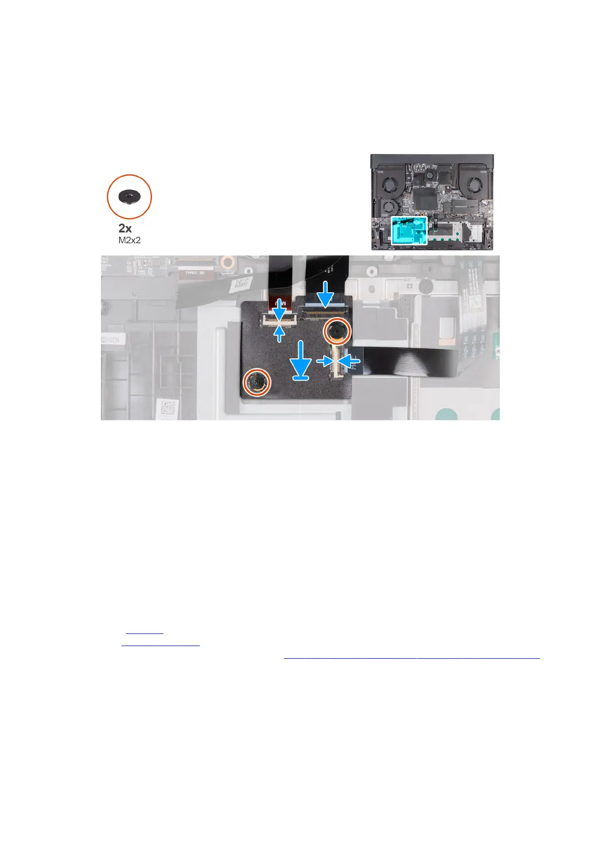 2. Επανατοποθετήστε τις δύο βίδες (M2x2) που συγκρατούν την πλακέτα ελεγκτή πληκτρολογίου στη διάταξη στηρίγματος