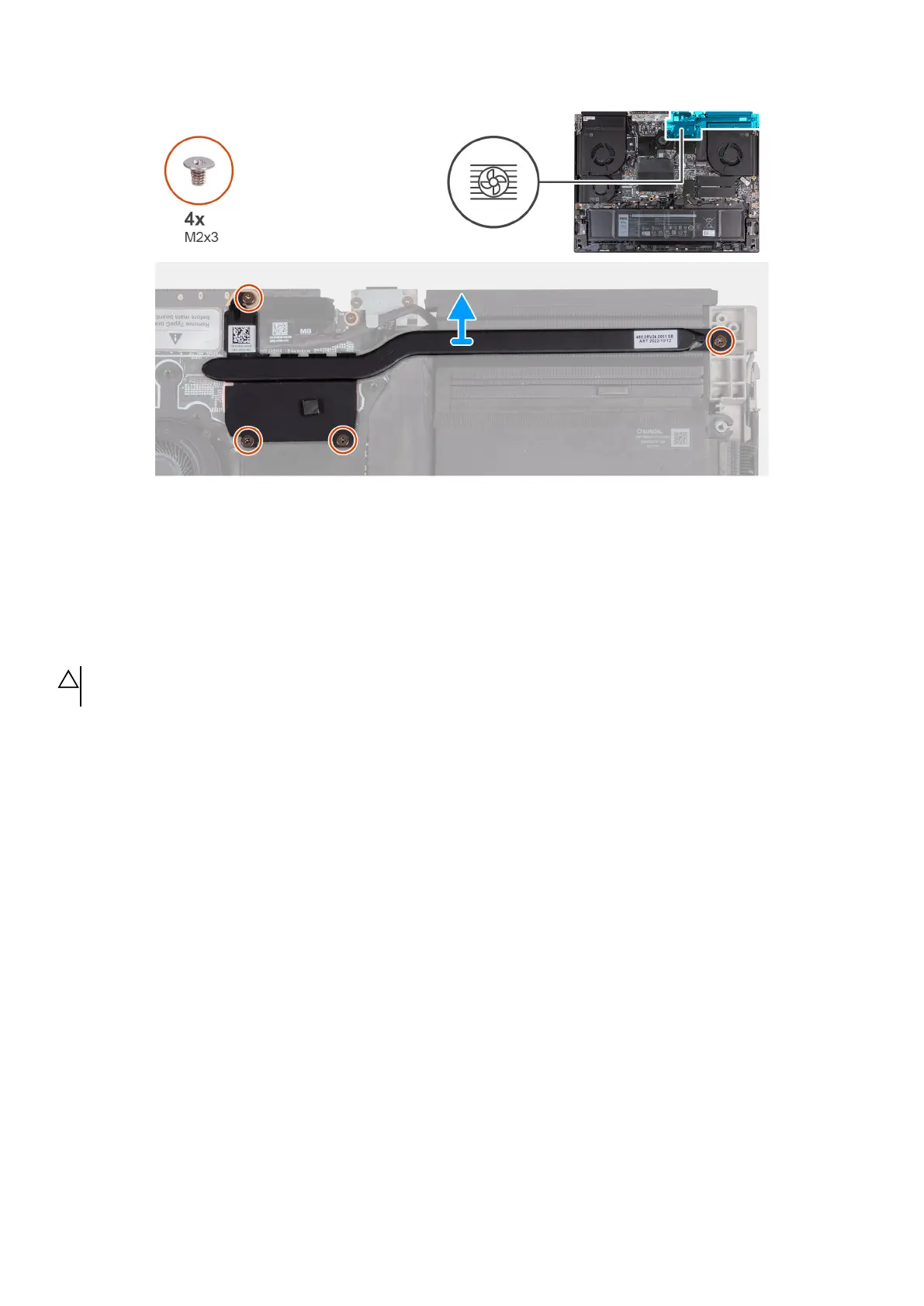 1. Αφαιρέστε τις τέσσερις βίδες (M2x3) που συγκρατούν την επάνω ψύκτρα στην πλακέτα συστήματος.