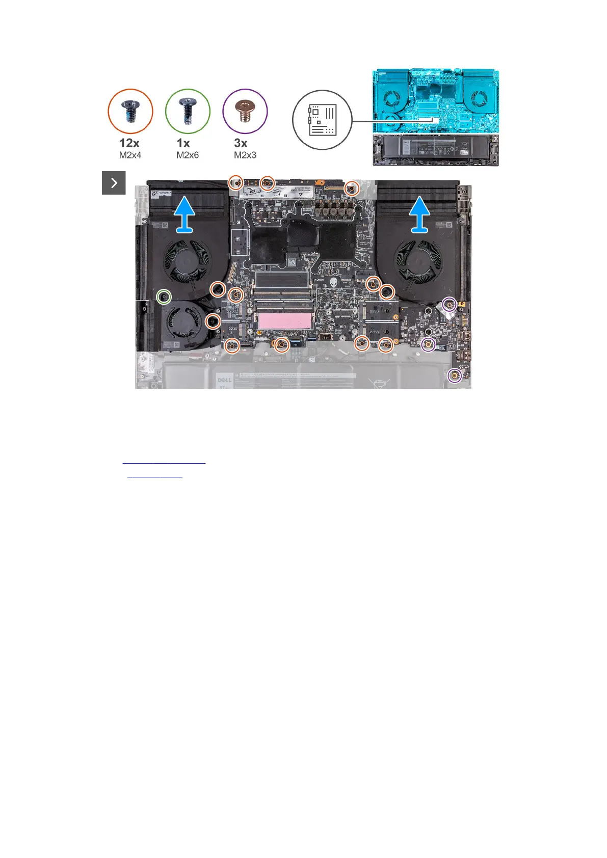 6. Επανατοποθετήστε τις δώδεκα βίδες (M2x4) που συγκρατούν την πλακέτα συστήματος στη διάταξη στηρίγματος παλάμης και