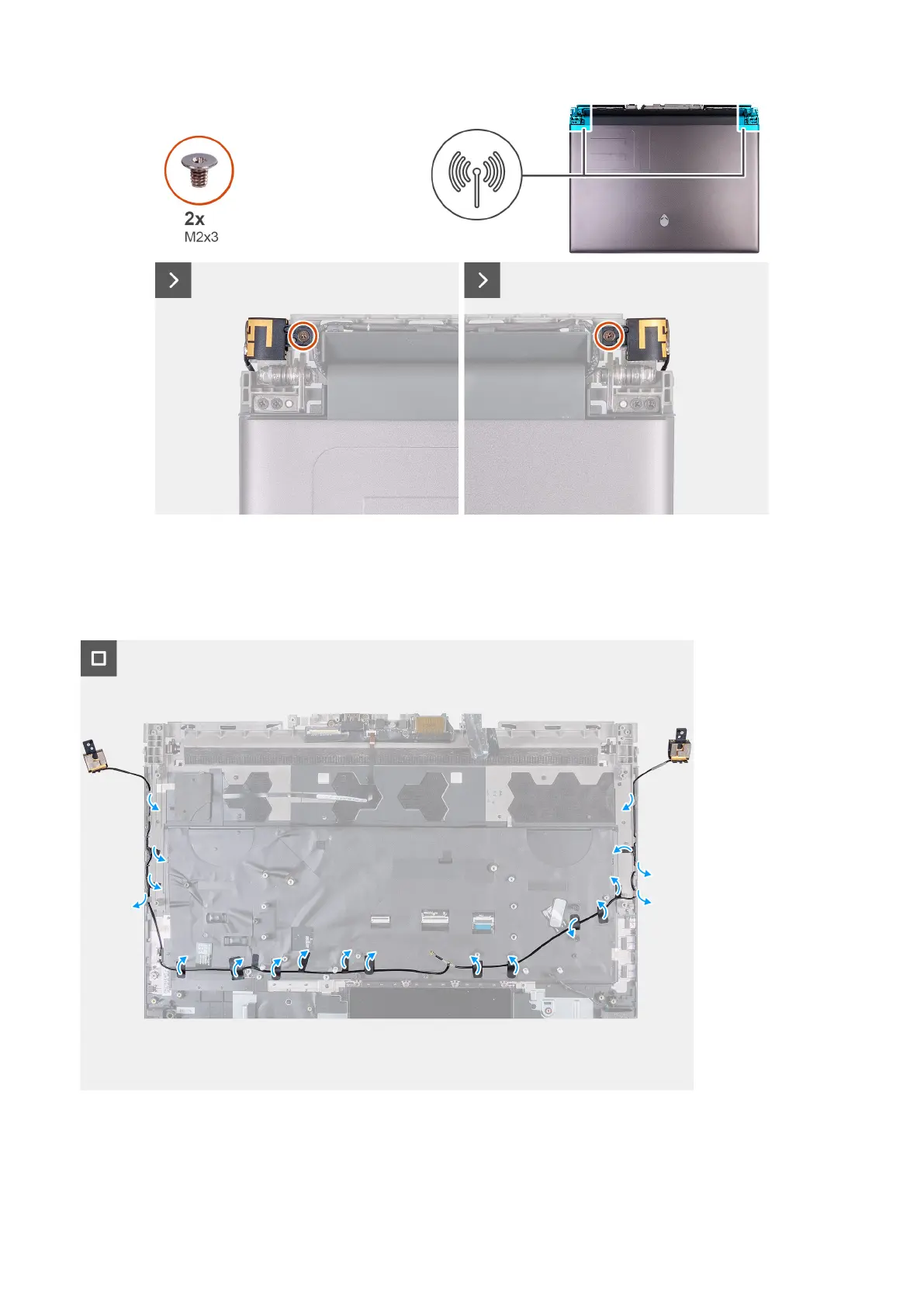 2. Αφαιρέστε τις δύο βίδες (M2x3) που συγκρατούν τη βάση συγκράτησης κεραίας στη διάταξη οθόνης.