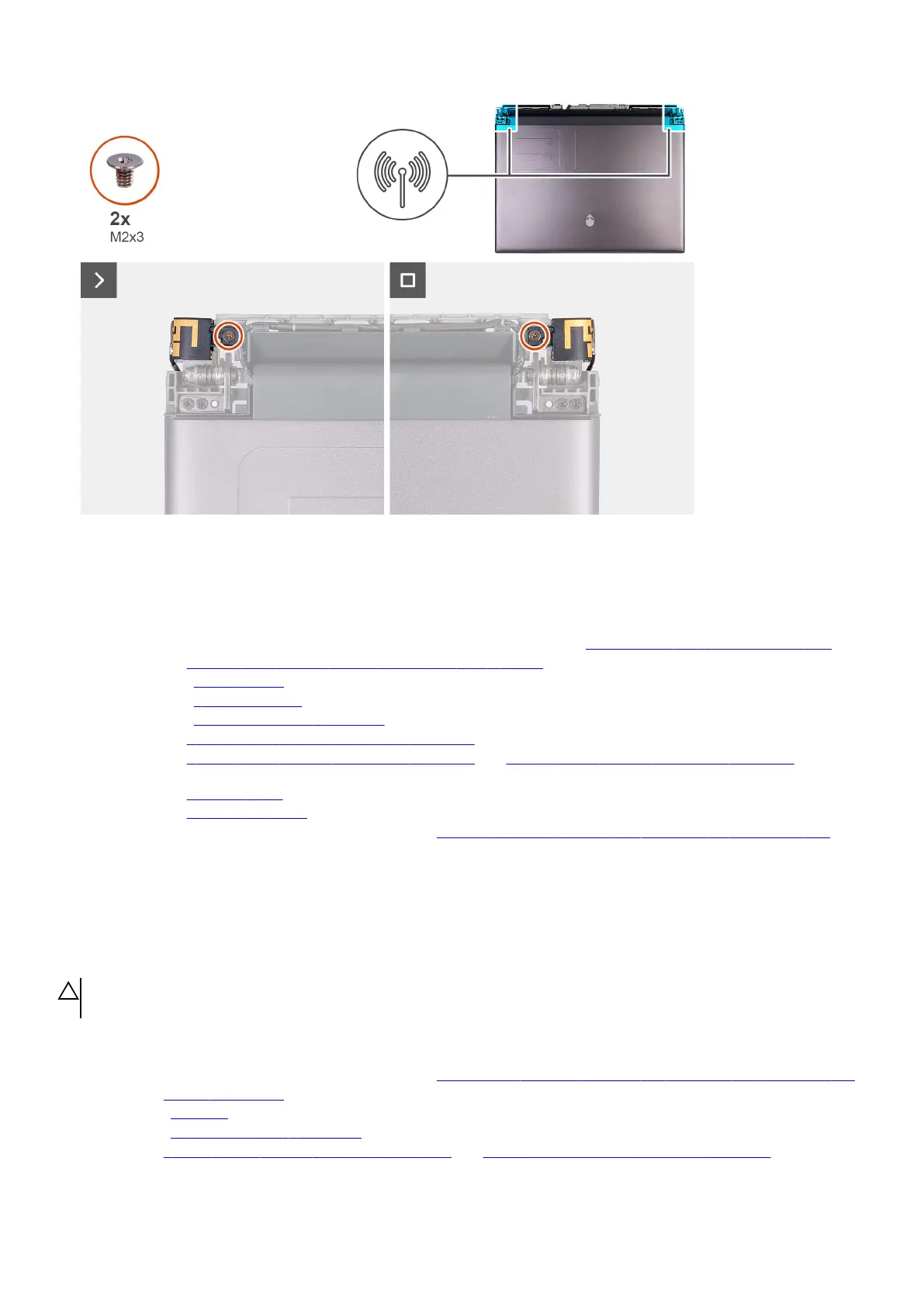 3. Επανατοποθετήστε τις δύο βίδες (M2x3) που συγκρατούν τη βάση συγκράτησης κεραίας στη διάταξη οθόνης.