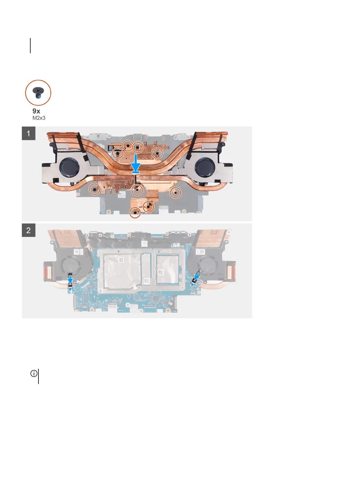 3. Plaats in de juiste volgorde (1>2>3>4>5>6>7>8>9) de negen schroeven (M2x3) terug waarmee de ventilator- en