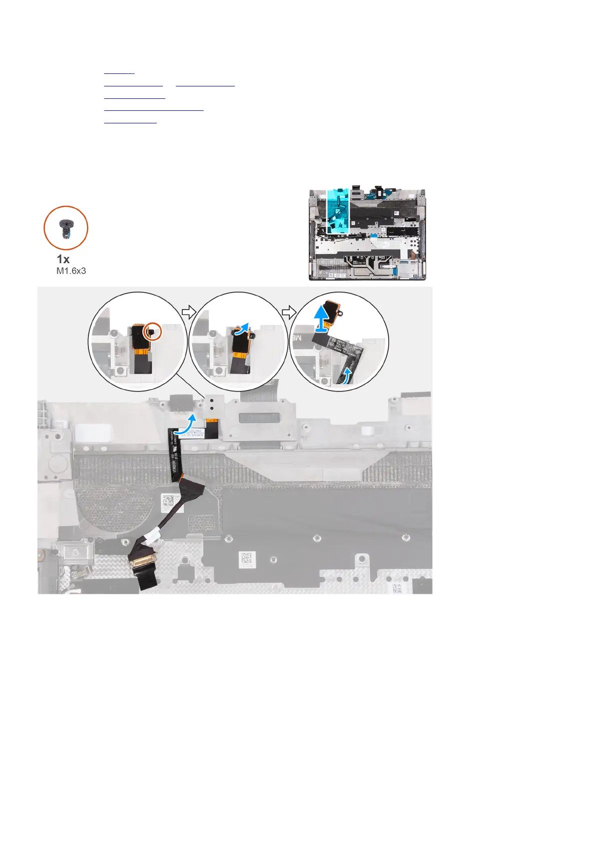 3. Verwijder de schroef (M1.6x3) waarmee de headsetpoort aan de palmsteun- en toetsenbordeenheid is bevestigd.