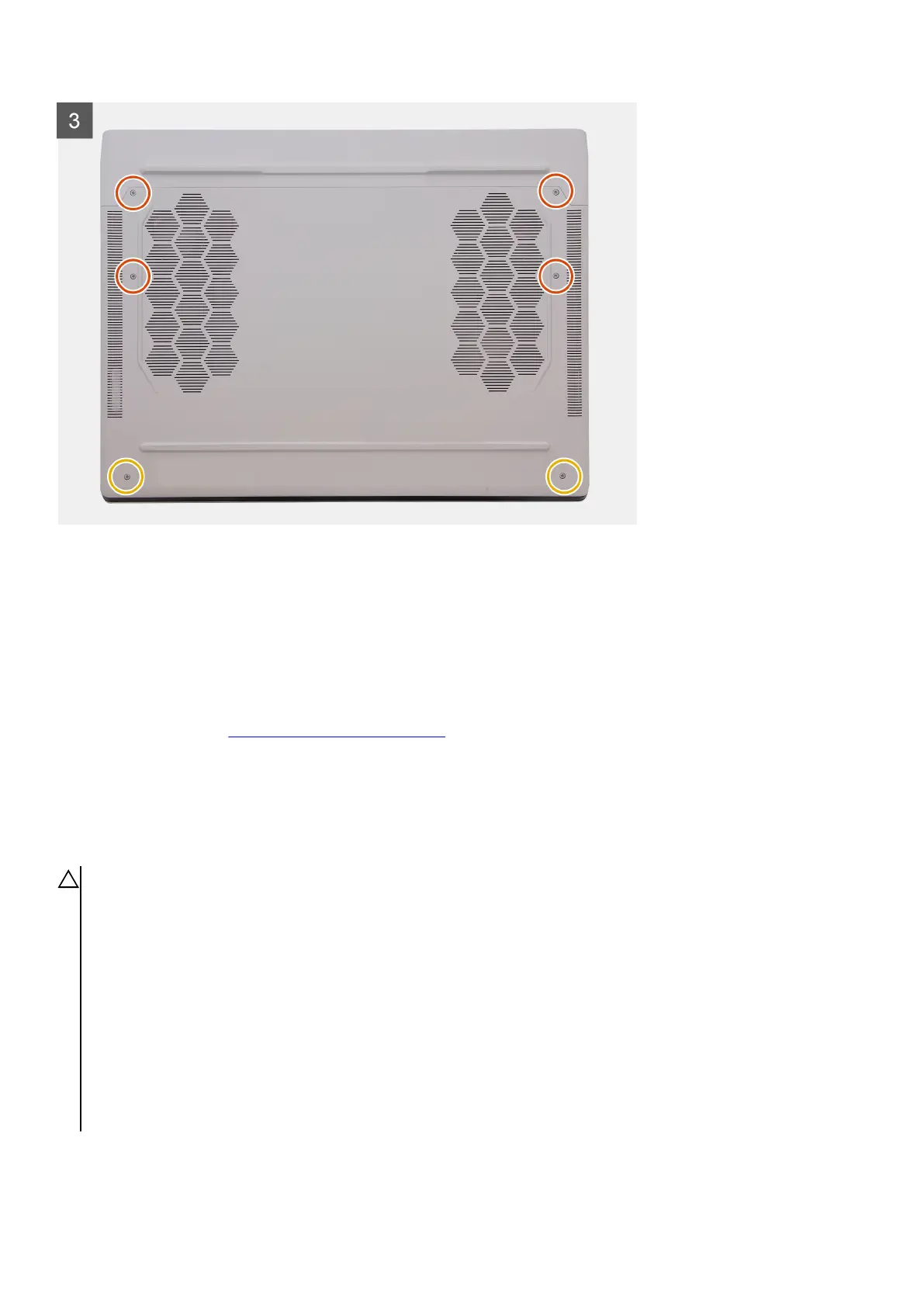 4. Replace the four screws (M2.5x7) that secure the base cover to the palm-rest and keyboard assembly.