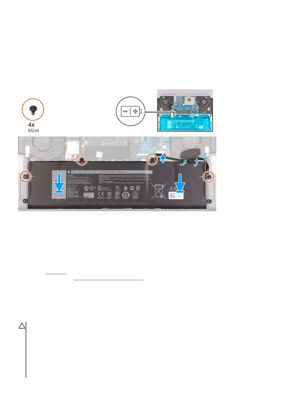 3. Replace the four screws (M2x4) that secure the battery to the palm-rest and keyboard assembly.