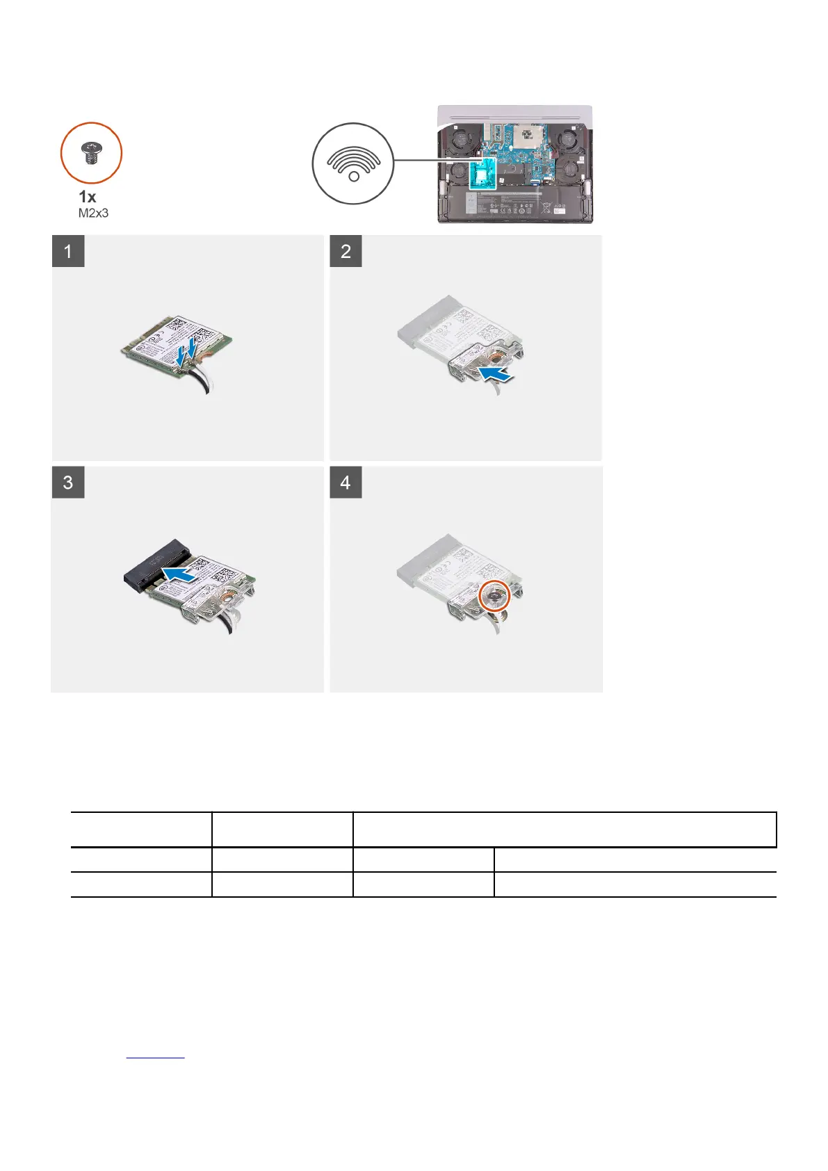 5. Replace the screw (M2x3) that secures the wireless-card bracket to the wireless card and the palm-rest and keyboard assembly.