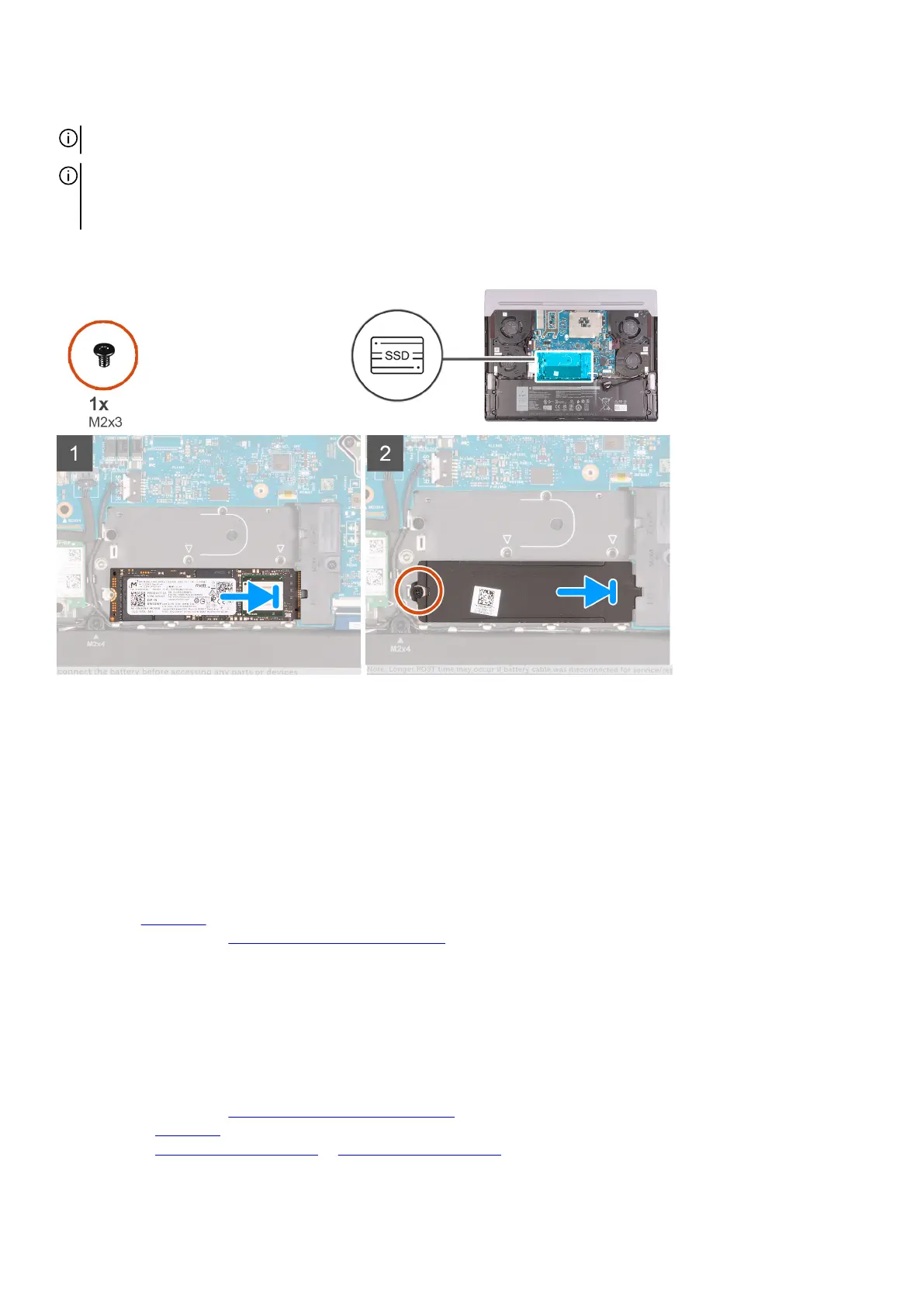 The following image(s) indicate the location of the solid-state drive and provides a visual representation of the installation procedure.