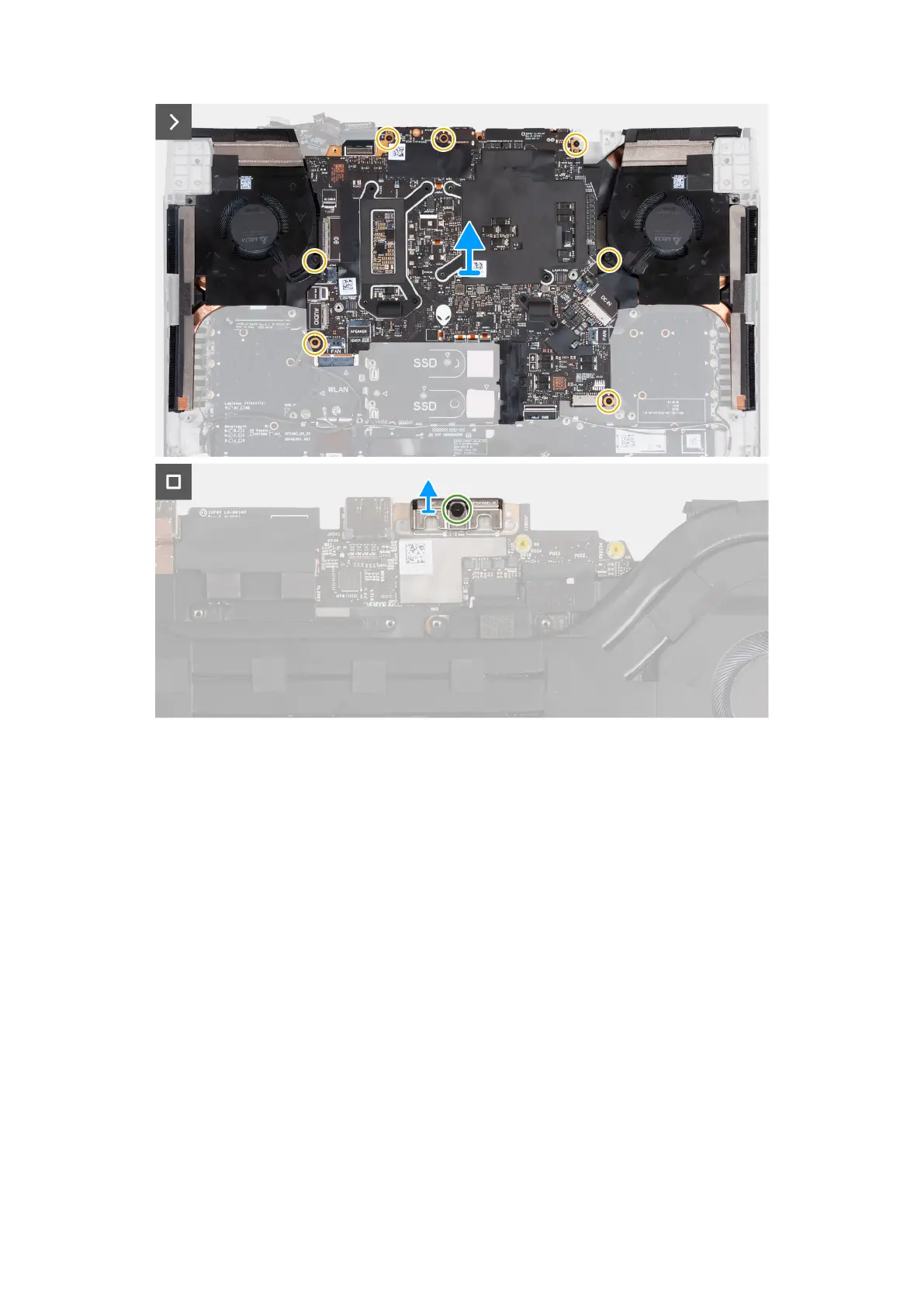 13. Αποσυνδέστε το καλώδιο του δεξιού ανεμιστήρα από την πλακέτα συστήματος.