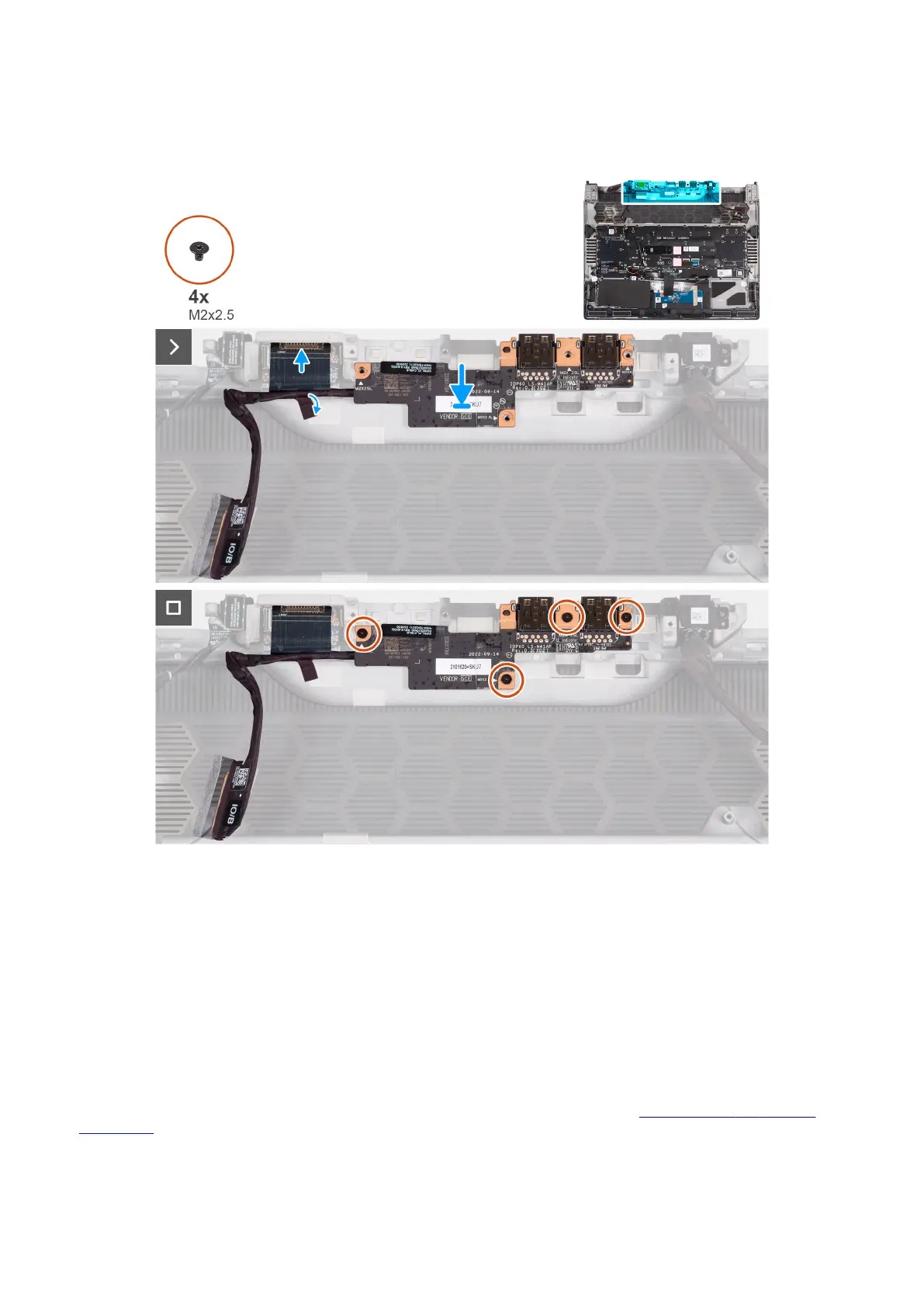 2. Επανατοποθετήστε τις τέσσερις βίδες (M2x2,5) που συγκρατούν την πλακέτα εισόδου/εξόδου στη διάταξη στηρίγματος