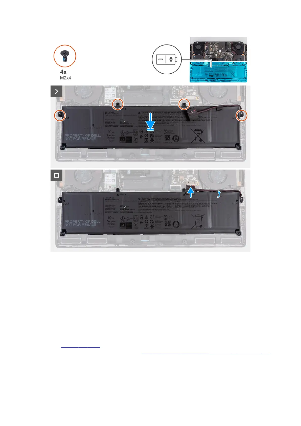 3. Επανατοποθετήστε τις τέσσερις βίδες (M2x4) που συγκρατούν την μπαταρία στη διάταξη στηρίγματος παλάμης και