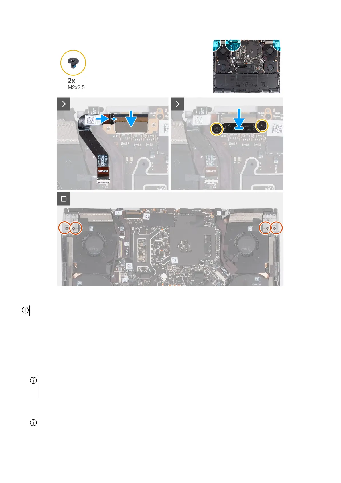 4. Επανατοποθετήστε τις τέσσερις βίδες (M2,5x4) που συγκρατούν τον αριστερό και τον δεξιό μεντεσέ της οθόνης στην πάνω
