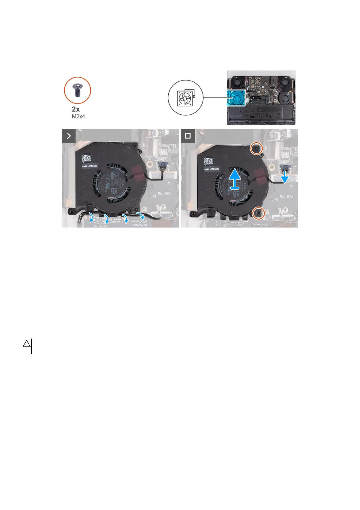 3. Αφαιρέστε τις δύο βίδες (M2x4) που συγκρατούν τον ανεμιστήρα του επεξεργαστή στη διάταξη στηρίγματος παλάμης και