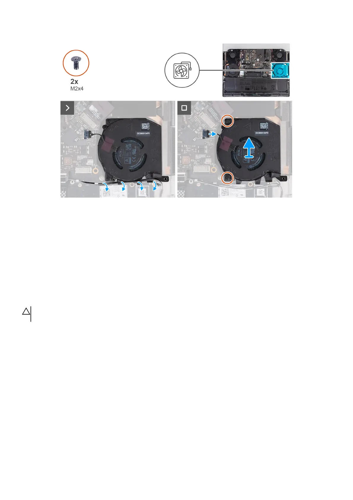3. Αφαιρέστε τις δύο βίδες (M2x4) που συγκρατούν τον ανεμιστήρα της κάρτας γραφικών στη διάταξη στηρίγματος παλάμης και