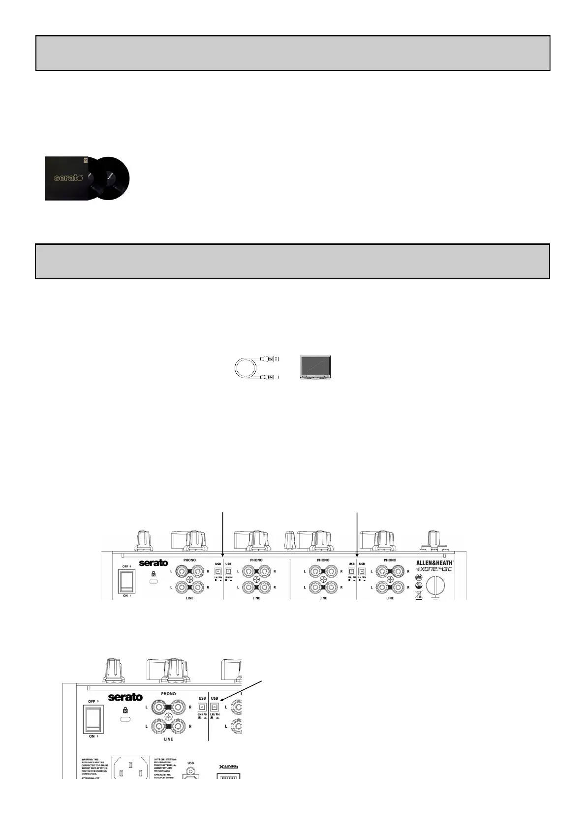 With your computer connected via USB to the XONE:43C, connect your turntables / CD Media