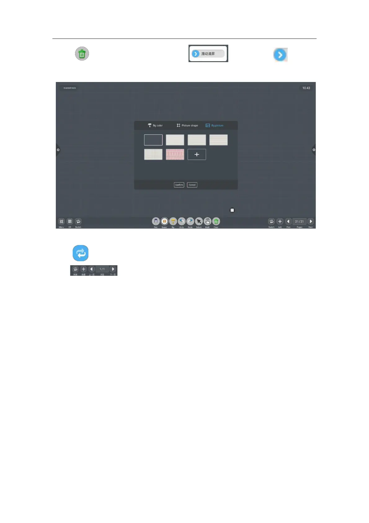 function icons, and up and down page function icons, page number preview function