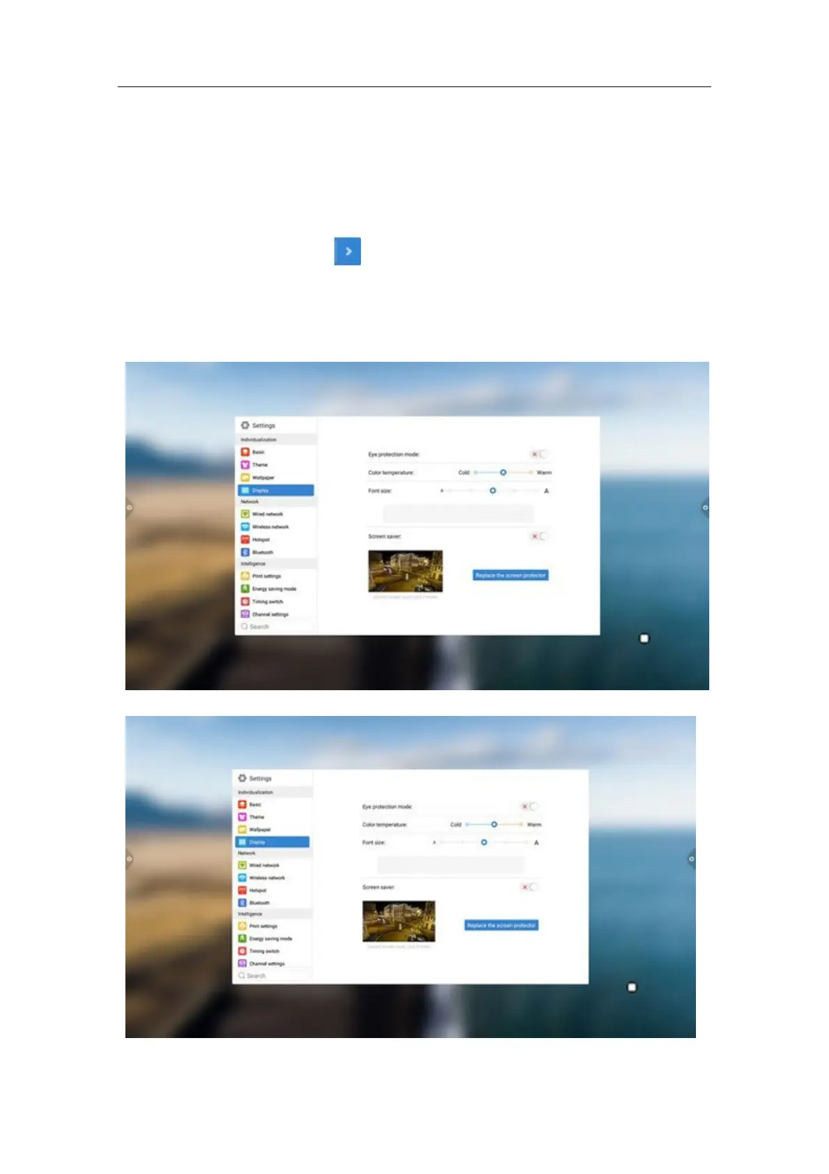 display setting, system update and upgrade, etc., as well as system version